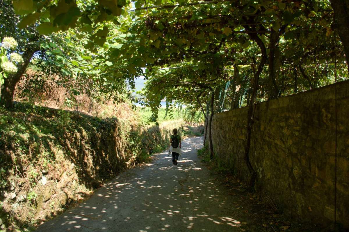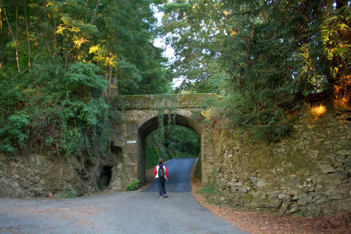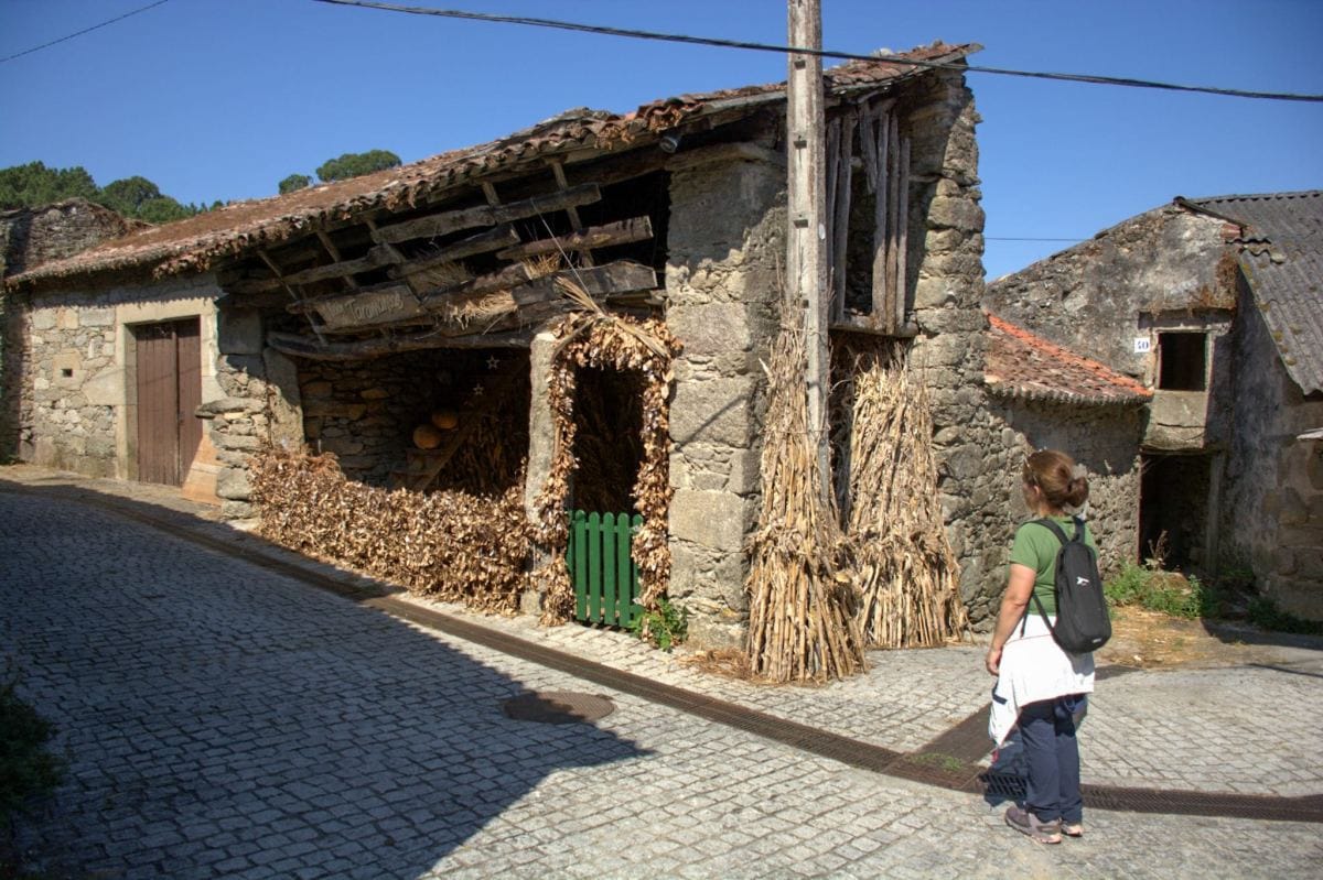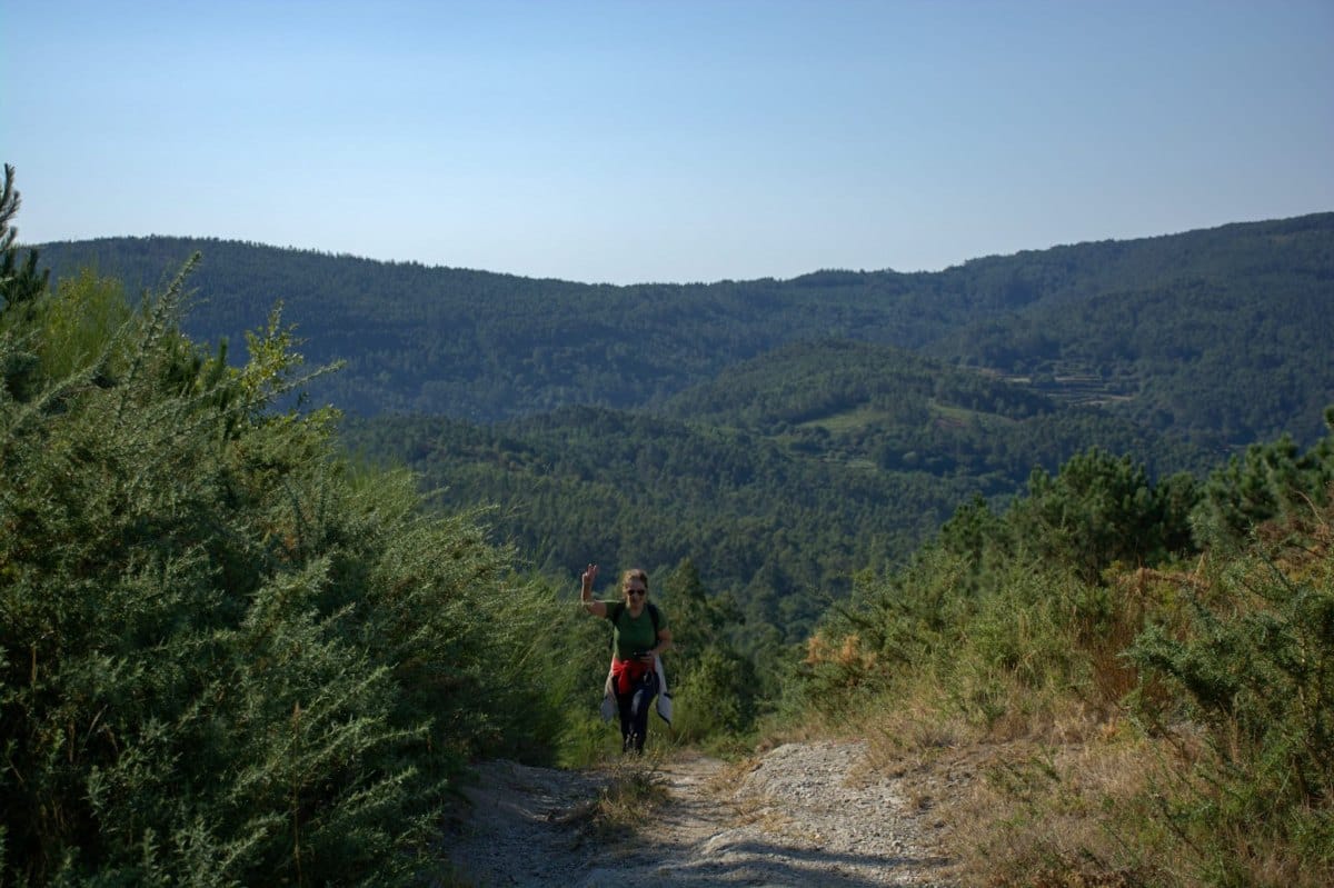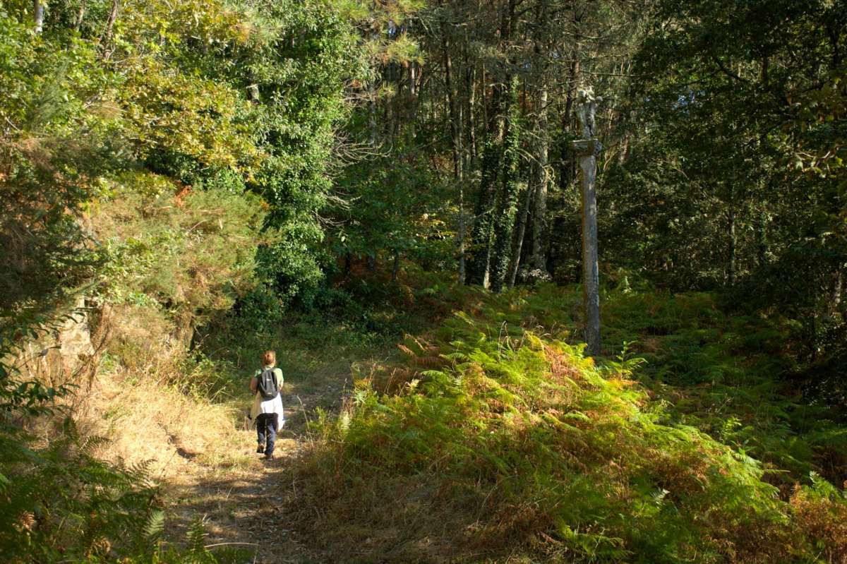 Cruzamos la pequeña aldea, el camino sucede entre las casas y nos adentra al bosque. Pudimos ver varias carballeiras, y algunos pinos realmente grandes.