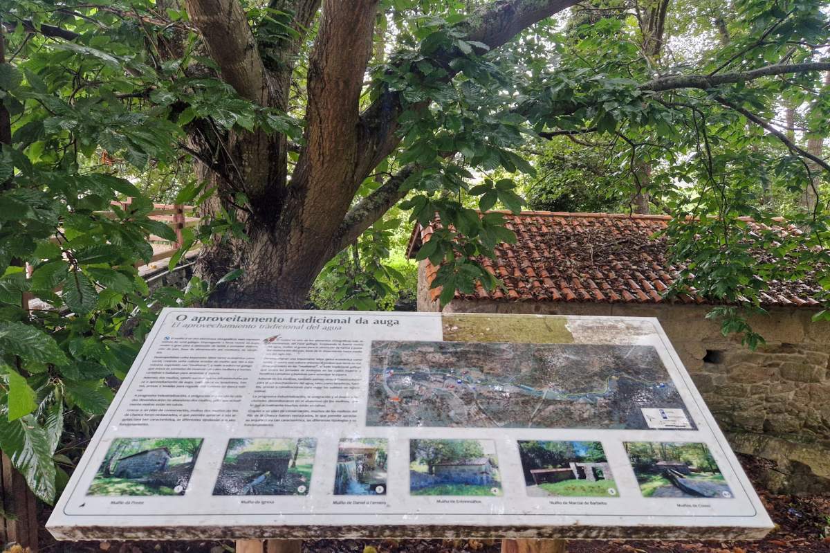 El primer molino lo encontramos nada más comenzar la ruta, y a pocos metros está la playa fluvial, que tiene un merendero y un viejo molino ahora convertido en bar-furancho, es O Muiño de Daniel O Ferreiro.