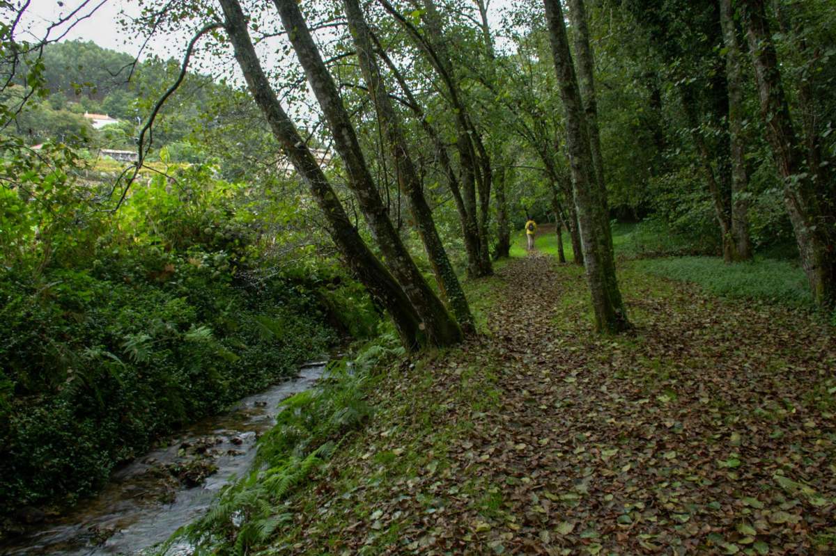 Después de pasar el cementerio de Santa María de Simes, los senderos de vuelven más naturales y comenzamos a ascender suavemente a la vez que nos adentramos en un bosque de robles y castaños.