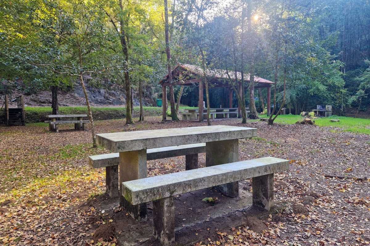 Dispone de zona de ocio bien acondicionada a orillas del río Mandeo, amplio aparcamiento, merendero, parque infantil, baños públicos y paneles informativos de la ruta.